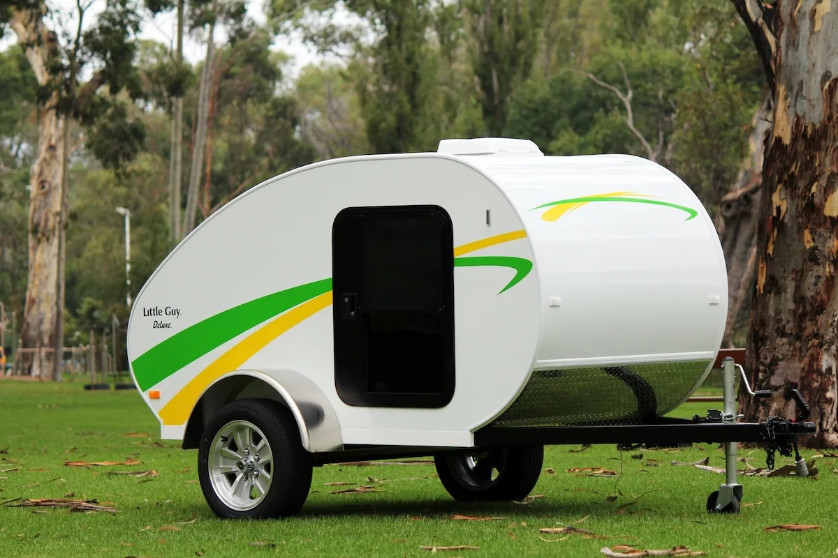 There are lots of options when it comes to teardrop campers, including those that aren’t in the ‘teardrop’ shape but still small and light like the teardrop with the kitchen facilities on the exterior. You can see a lot more options over on our post about teardrop campers, but here are some that I love: