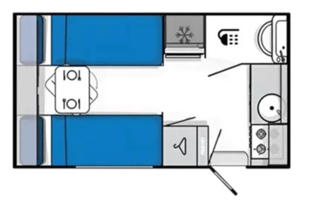 This model has a large seating / dining area with panoramic windows, perfect for watching the world go by without being out in the elements. This area converts to a double bed for those occasions when you do get overnight visitors.
