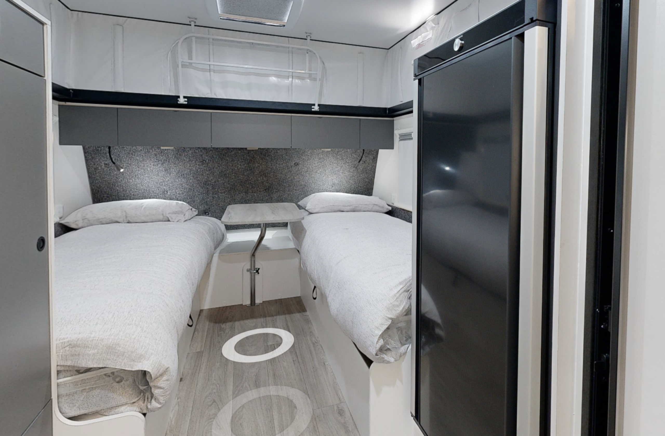 I think that the Explorer Pathfinder is the only truly single person RV on this list. Where there’s the option to reduce the size of the bed into a large single and use the extra space for storage.