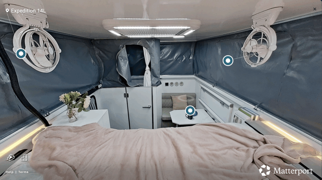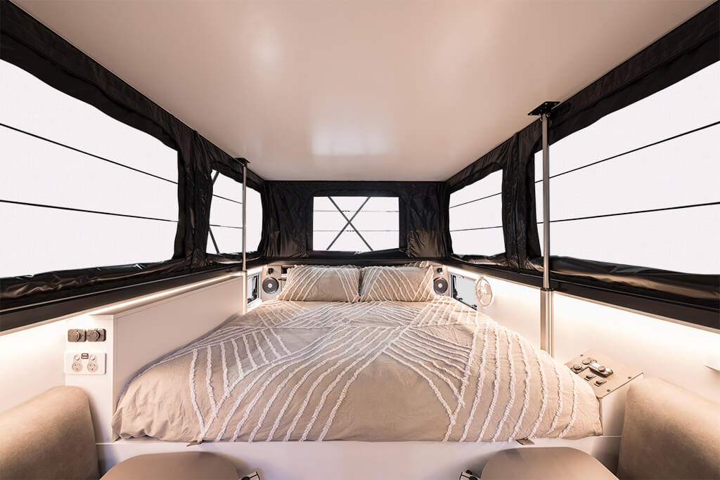 The Karavan Classic is one of the most unique designs on the market — it folds down into this compact, 2.115m tall pod, and then expands into a surprisingly roomy interior.